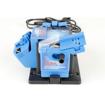 Date tehnice: Alimentare - 230V ~ 50Hz Putere - 800W Rotatii - 5300 rpm Dimensiunile discurilor - piatra 100x8x10mm / diamantat. 103x10 mm Diametrul panzelor ce pot fi ascutite - 90-400 mm Greutate - 5,4 kg Informații despre produs: Un dispozitiv de ascuțit electric pentru ferăstraie circulaer este un dispozitiv extrem de util oriunde se folosesc ferăstraie circulare cu și fără widia. Ascuțitorul este echipat cu un motor cu inducție extrem de puternic și durabil , cu o putere de 800W. Datorită acestei soluții, motorul nu necesită întreținere Puterea mare permite ascuțirea confortabilă chiar și în cazul panzelor din materiale dure, widia sinterizată și oțelul tradițional. Datorită utilizării unei roți abrazive speciale cu un diametru de 100 mm și utilizării unei cleme conice, aceasta poate fi utilizată pentru ferăstraie cu diametre de la 90 la 400 mm și o gaură de montare cu orice diametru disponibil în mod obișnuit. Ascuțitorul este, prin urmare, extrem de versatil și poate fi folosit de cei mai pretențioși utilizatori pentru munca grea, precum și de persoanele neexperimentate sau cei care își încep aventura cu acest tip de dispozitiv. Acest lucru se datorează faptului că dispozitivul este ușor de utilizat și extrem de intuitiv. Toate butoanele de reglare au o scală și o gradare adecvate. Întregul corp al dispozitivului este realizat din plastic dur, datorită căruia dispozitivul de ascuțit are o structură rigidă, compactă și o rezistență ridicată la deteriorarea mecanică și la uzură. Baza dispozitivului, din fontă, asigură stabilitatea și garantează durabilitatea întregului. Munca liniștită și confortabilă este asigurată de tampoane de cauciuc.