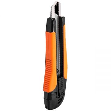 Cutter cu lame detasabile Wolfcraft 4138000, latime lama 18 mm, carcasa plastic cu maner moale, magazie pentru lame